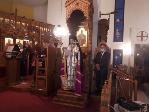 Του Εσπερινού προέστη ο Επίσκοπος Μεσαορίας κ. Γρηγόριος, ο οποίος κήρυξε το θείο λόγο.