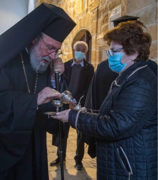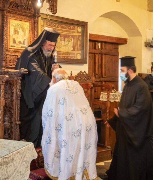 Εκεί τον υποδέχθηκαν εγκαρδίως τα μέλη τής εκκλησιαστικής επιτροπής και ο νέος Πρόεδρός της κ. Νικόλαος Κουτσοπέταλος καθώς και ο εφημέριος τού ναού -ο επί σειρά ετών διάκονος τού μακαριστού Αρχιεπισκόπου κυρού Χρυσοστόμου Α΄- π. Γεώργιος Μελέτης.