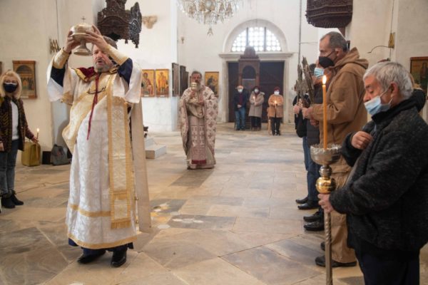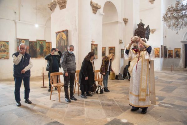 Ο Καθηγούμενος της Μονής Αρχιμανδρίτης κ. Ιωάννης, συνοδευόμενος από κληρικούς της Ιεράς Αρχιεπισκοπής, ξεκίνησαν νωρίς το πρωί από την Λευκωσία προκειμένου να τελέσουν την αναίμακτη θυσία και να προσφέρουν τα Τίμια Δώρα στους πιστούς, που με πολύ ζήλο πορεύθηκαν σήμερα μέχρι τα κατεχόμενα μέρη μας.