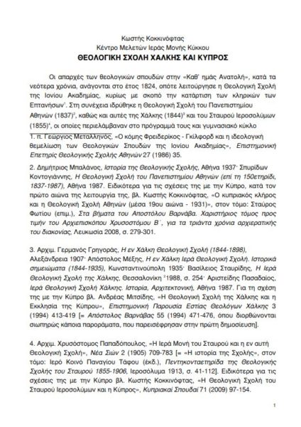 Θεολογική Σχολή Χάλκης και Κύπρος (Μελέτη)