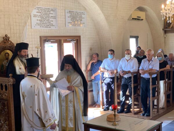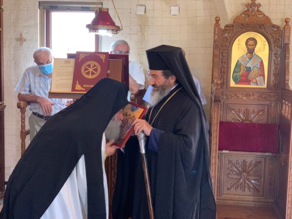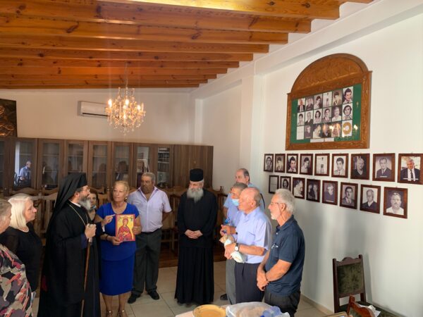 Ακολούθως, ο Επίσκοπος, προσέφερε για το Ναό, στον Πρωτοσύγκελο Αρχιμ. Γρηγόριο, την εικόνα των πέντε Αγίων Επισκόπων Κυθρέας, μεταξύ αυτών και του Αγίου Φωτεινού, που εορτάζει στις 2 Αυγούστου. Αργότερα στην αίθουσα, κατά τη διάρκεια του κεράσματος, προσέφερε την εικόνα της Παναγίας Απαλαίστρας της Πυργάς Μεσαορίας.