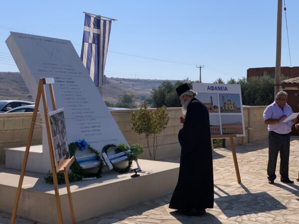 Οι εκτοπισμένοι της κοινότητας Αφάνειας, στον κάμπο της Μεσαορίας, μνημόνευσαν τους οικείους νεκρούς: τους υπέρ Πίστεως και Πατρίδος αγωνισαμένους και πεσόντες κατά τους απελευθερωτικούς αγώνες έως την τουρκική εισβολή του 1974 προς προάσπιση της Κυπριακής Δημοκρατίας, των ιερών και οσίων, της ακαιρεότητας της πατρίδας, των αμάχων θυμάτων της τουρκικής θηριωδίας τον Ιούλιο του 1974 και των ειρήνη τελειωθέντων Αφαντιτών κληρικών, κοινοταρχών, διδασκάλων, ευεργετών, πατέρων και αδελφών.