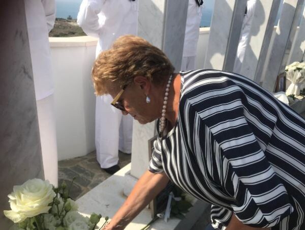 Μετά την κατάθεση στεφάνων, η σύζυγος του Προέδρου της Δημοκρατίας Άντρη Αναστασιάδη έβαλε στον κάθε τάφο των 13 ηρώων από ένα άσπρο τριαντάφυλλο.