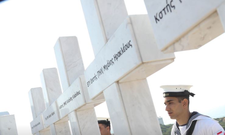 Η επιμνημόσυνη δέηση άρχισε με την άφιξη στη Ναυτική Βάση των 56 μελών της ΕΜΑΚ που ξεκίνησαν το πρωί πορεία από τα γραφεία της Δύναμης στην Κοφίνου.