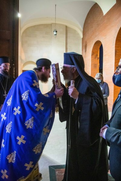 Στο τέλος της Ακολουθίας των Χαιρετισμών, ο Μακαριώτατος ευλόγησε τους πιστούς και ευχήθηκε σε όλους να έχουν μαζί τους την Χάριν τού Θεού στην αγία αυτή περίοδο που διανύουμε.