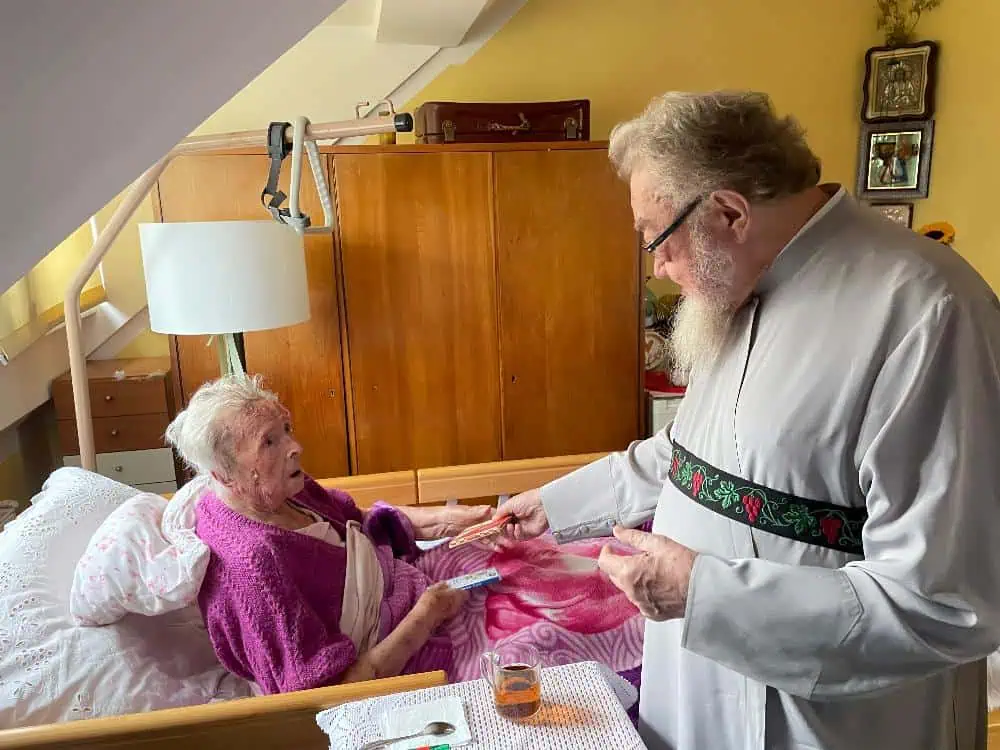 Κατά τη διάρκεια της επίσκεψης, ο Μακαριώτατος συναντήθηκε με την γηραιότερη κάτοικο του Γηροκομείου «Betania», την Raisa Kwiatkowska, η οποία γιόρταζε τα 103α γενέθλιά της.