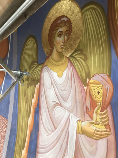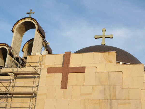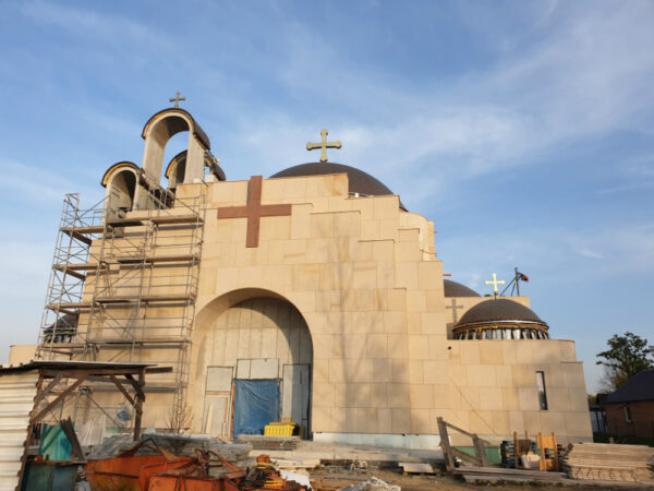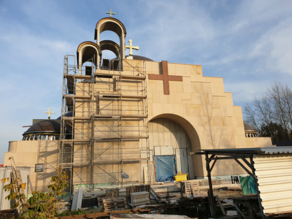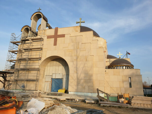 Επιπλέον, σύντομα αναμένεται να ολοκληρωθούν οι εργασίες στο καμπαναριό το οποίο είναι ένα σημαντικό στοιχείο της κύριας πρόσοψης και θα έχει ύψος 16.55 μέτρα ενώ παράλληλα συνεχίζεται το σοβάτισμα σε ορισμένα σημεία στο εσωτερικό του Ναού.