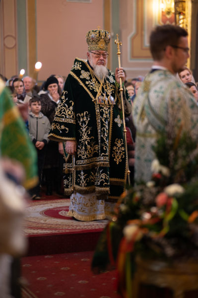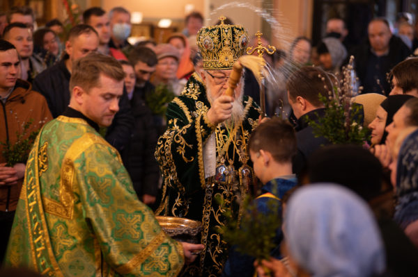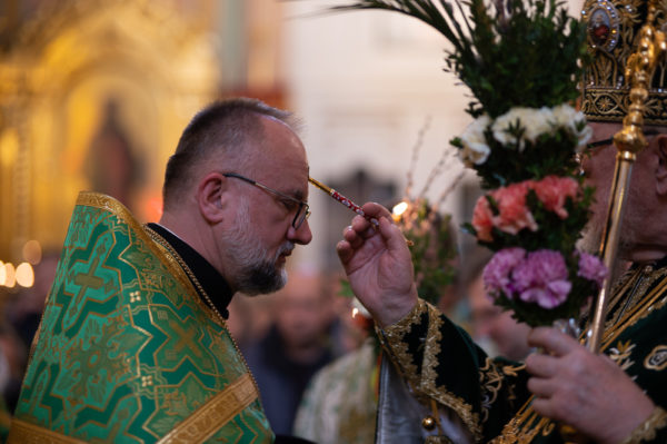 Στη Θεία Λειτουργία προεξήρχε ο Μακαριώτατος Μητροπολίτης Βαρσοβίας και πάσης Πολωνίας κ.κ. Σάββας ο οποίος ευλόγησε τα βάϊα τα οποία διανεμήθηκαν στους πιστούς.