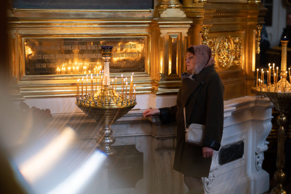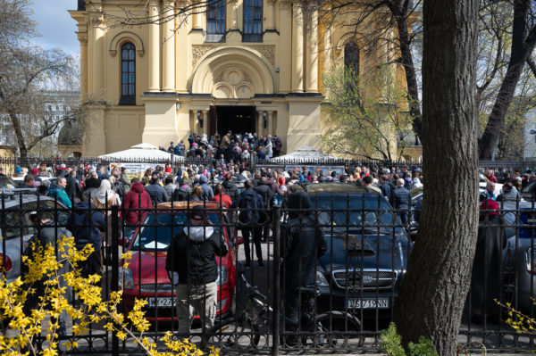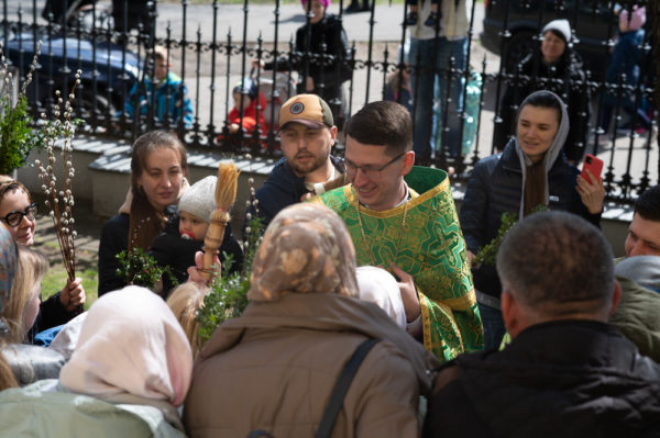 Στο τέλος της Θείας Λειτουργίας έξω από τον Καθεδρικό Ναό είχε δημιουργηθεί μεγάλη ουρά από πιστούς προκειμένου να λάβουν τα βάϊα με τους ιερείς να εύχονται καλή Ανάσταση.