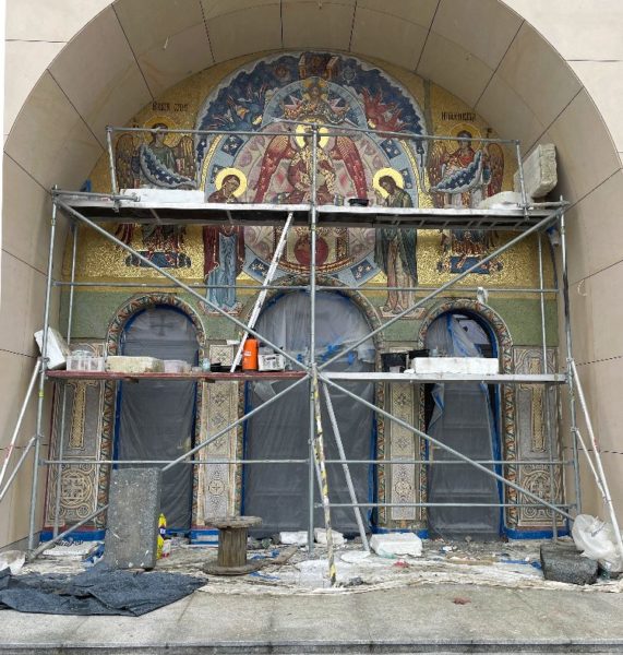 “Σε εξέλιξη βρίσκονται οι εργασίες συναρμολόγησης ψηφιδωτού πάνω από την είσοδο της εκκλησίας. Οι εικονογραφικές εργασίες συνεχίζονται στο τμήμα πάνω από την κεντρική είσοδο. Επίσης, ολοκληρώθηκε η τοποθέτηση μεταλλικών κιγκλιδωμάτων. Η Μητρόπολη θα ήθελε να ευχαριστήσει όλους όσους κάνουν δωρεές στην Αγία Σοφία στη Βαρσοβία. Ο κλήρος που διακονεί στην ενορία της Αγίας Σοφίας – Σοφία του Θεού δέεται για όλους τους δωρητές”, αναφέρει η ανακοίνωση από το Γραφείο Τύπου της Εκκλησίας της Πολωνίας με αφορμή τη χθεσινή επίσκεψη του Μακαριωτάτου.