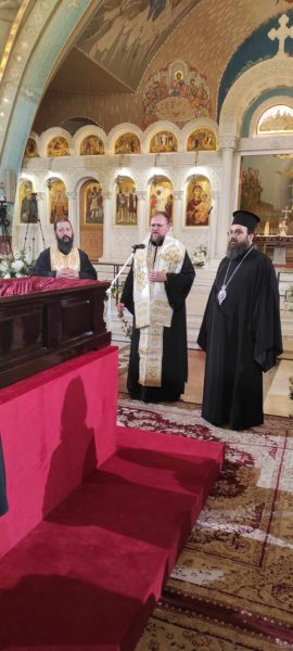Ο Σεβ. Μητροπολίτης Μιχαλουπόλεως και Κόσιτσε κ. Γεώργιος, αμέσως μετά την άφιξή του τέλεσε στον Καθεδρικό Ναό της Αναστάσεως του Χριστού Τρισάγιο ενώπιον του σκηνώματος του μακαριστού Αρχιεπισκόπου κυρού Αναστασίου.