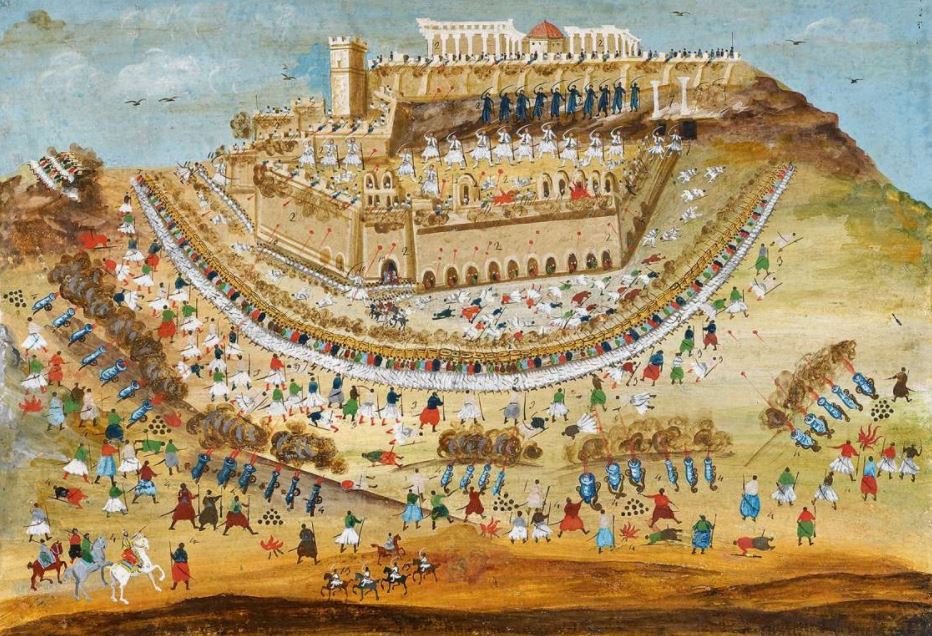 ΦΩΤΟΓΡΑΦΙΑ: «Η πολιορκία των Αθηνών» του Δημητρίου Ζωγράφου. Ενα από τα έργα (ακουαρέλες) που ο στρατηγός Μακρυγιάννης παρήγγειλε στους λαϊκούς ζωγράφους Παναγιώτη και Δημήτριο Ζωγράφο από τη Σπάρτη, ζητώντας τους να απεικονίσουν μάχες, όπως τις περιέγραψε στα «Απομνημονεύματά».