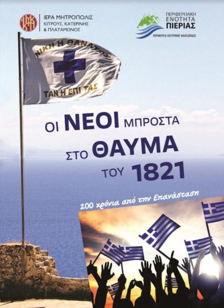 Oι δράσεις της Ιεράς Μητροπόλεως Κίτρους, Κατερίνης και Πλαταμώνος για τον επετειακό εορτασμό της Επανάστασης του 1821 συνεχίζονται. Αυτή τη φορά η Ιερά Μητρόπολη σε συνεργασία με την Περιφερειακή Ενότητα Πιερίας, προχώρησε στην έκδοση ενός σύγχρονου και πρότυπου βιβλίου που είναι αφιερωμένο στην Ελληνική Επανάσταση με τίτλο «Οι νέοι μπροστά στο θαύμα του 1821. 200 χρόνια από την Επανάσταση».