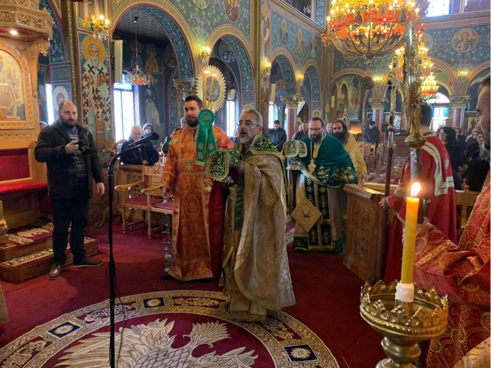 Προηγουμένως είχε τελεστή η Θεία Λειτουργία και η ευλογία του κόλλυβου του Αγίου Σεραφείμ, από τον Μητροπολίτη Βρεσθένης Θεόκλητο, ο οποίος και έδωσε τις ευχές του για καλή και ευλογημένη χρονιά σε κλήρο και λαό, αλλά και στον φερώνυμο του Οσίου, πρόεδρο του Εκκλησιαστικού Συμβουλίου του Ναού, αρχιμανδρίτη Σεραφείμ Δημητρίου.