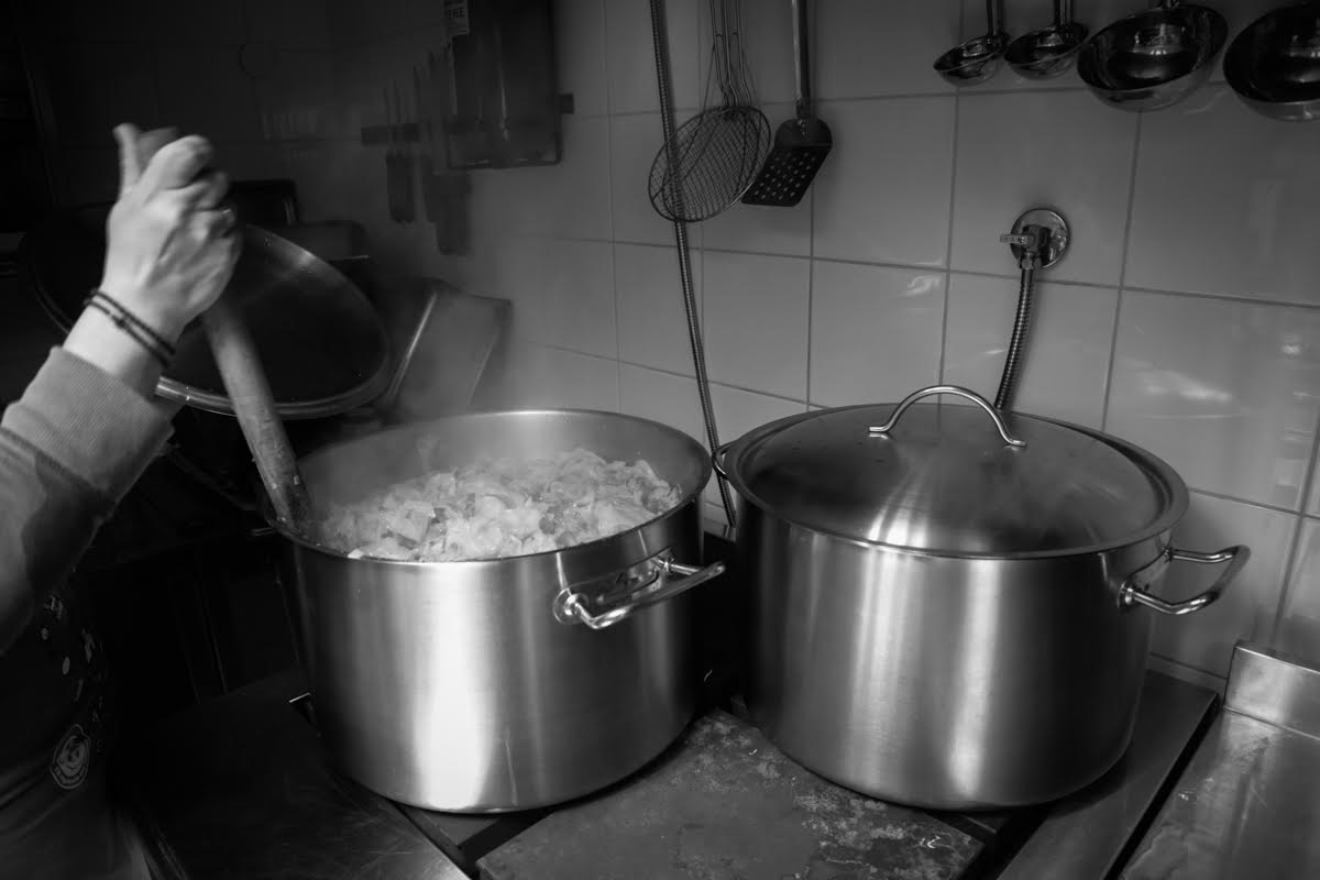 Μας υποδέχτηκε η κα Μαρία, η αρχιμάγειρας, που καθημερινά βρίσκεται εκεί από τις 7 η ώρα το πρωί.