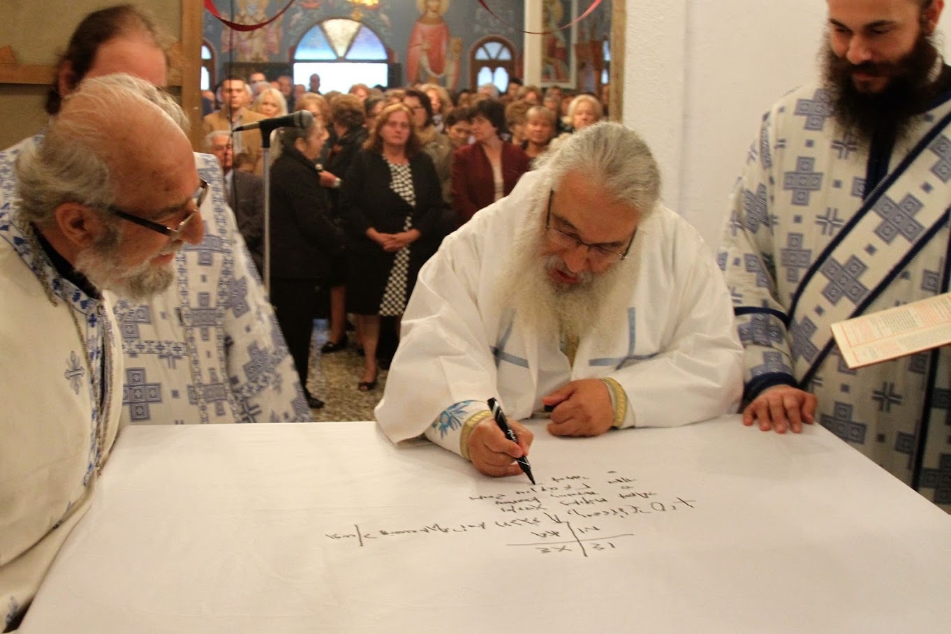 Ο Σεβασμιώτατος κατά την σύντομη ομιλία του παρατήρησε ότι, ενώ σε όλη την Ευρώπη μεγάλος αριθμός ναών των Καθολικών και των Προτεσταντών σταματούν να λειτουργούν, λόγω έλλειψης ποιμνίου, στην Πατρίδα μας εγκαινιάζονται συνεχώς νέοι ναοί.