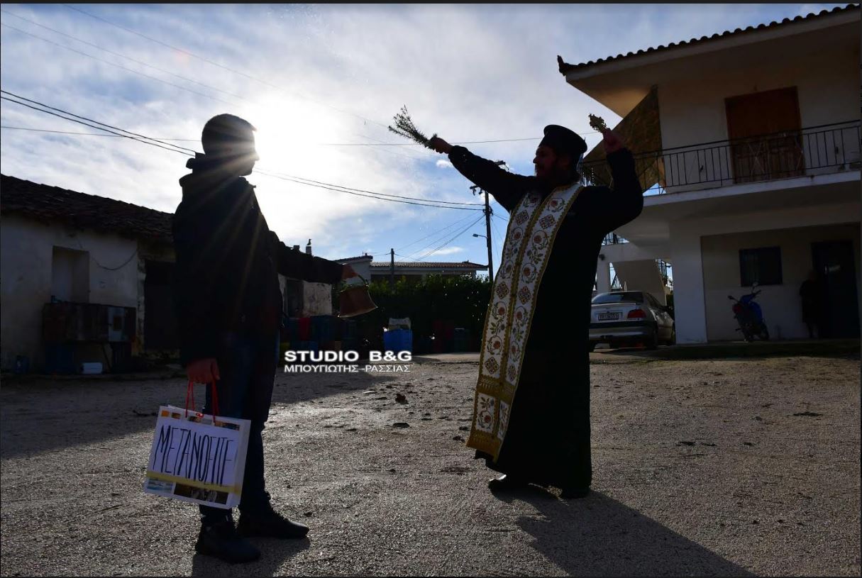 Ο ιερέας π. Χρήστος Ιωαννίδης, από την ενορία της Αγίας Μαρίνας Νέου Ροεινού Ναύπλιου , την παραμονή των Θεοφανείων , βγαίνει με τον Αγιασμό και αγιάζει τα σπίτια και τους κατοίκους του χωριού, Σάββατο 5 Ιανουαρίου 2019. Πρόκειται για ένα έθιμο που κρατά από πολύ παλιά. Ο Αγιασμός που τελείται την παραμονή και ανήμερα της γιορτής των Θεοφανείων είναι ακριβώς ο ίδιος. Ο Μικρός Αγιασμός τελείται την πρώτη μέρα κάθε μήνα καθώς και εκτάκτως όταν το ζητούν οι χριστιανοί σε διάφορες περιστάσεις. Δεν τίθεται θέμα ποιος είναι αγιότερος και ποιος λιγότερο άγιος, καθώς και οι δύο τύποι αγιασμού είναι αγιασμένοι από τη ζωοποιώ χάρη του αγίου Πνεύματος. Ο Μεγάλος Αγιασμός φυλάσσεται όλο το χρόνο στο ναό και δίδεται στους χριστιανούς σε 2 περιπτώσεις: όταν κάποιος είναι ασθενής «εις αγιασμόν και ίασιν ψυχής τε και σώματος» και στην περίπτωση που κάποιος χριστιανός δεν μπορεί να μεταλάβει το Σώμα και το Αίμα του Χριστού γιατί διατελεί κάτω από κάποιο παιδαγωγικό επιτίμιο του πνευματικού του.