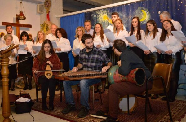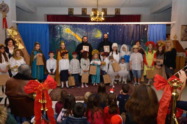 Αρχικά, η εκδήλωση ξεκίνησε με την εμφάνισή της Παιδικής Χορωδίας μαζί με την συνοδεία πιάνου, υπό την Διεύθυνση της κ. Χρύσας Καβάση. Η Παιδική Χορωδία απέσπασε θερμό χειροκρότημα από τους παρισταμένους, οι οποίοι είχαν κατακλείσει τον κάτω όροφο του Ναού, για την άριστη εκτέλεση των καλάντων και των τραγουδιών. Στο δεύτερο μέρος τρεις μαθητές του Τμήματος Εκμάθησης Πιάνου, υπό την καλλιτεχνική υπόδειξη και διεύθυνση της κ. Χρύσας Καβάση έπαιξαν πιάνο και ήταν οι Δέσποινα Καρατάσου, Μαριλίνα Σιδηροπούλου, Αλέξης Ζαχαριάδης.