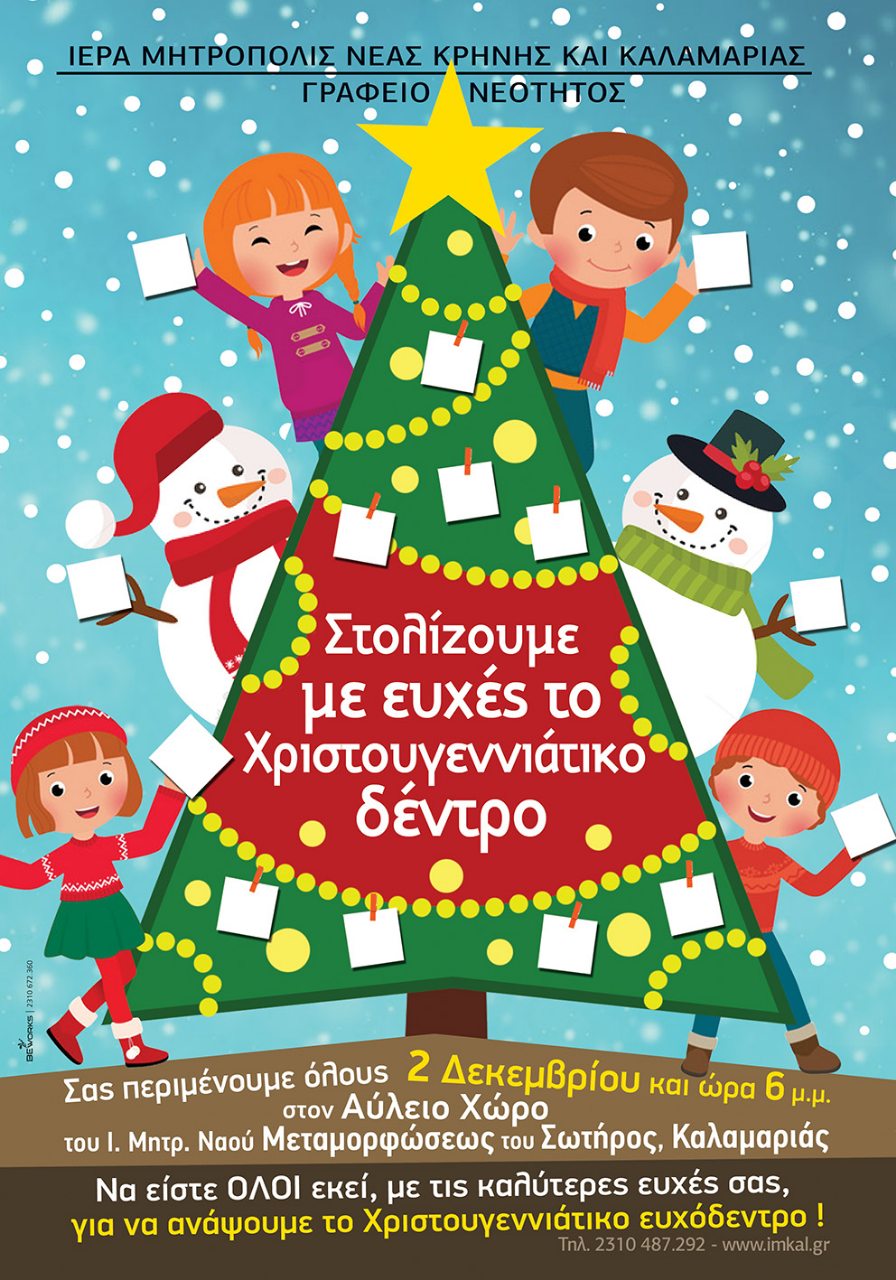 Με τη ευλογία και Τιμητική παρουσία του Μητροπολίτου Νές Κρήνης και Καλαμαριάς κ. Ιουστίνου, θα στολίσουμε με τις καλύτερες ευχές μας και θα ανάψουμε το Χριστουγεννιάτικο δέντρο της Μητροπόλεώς μας.
