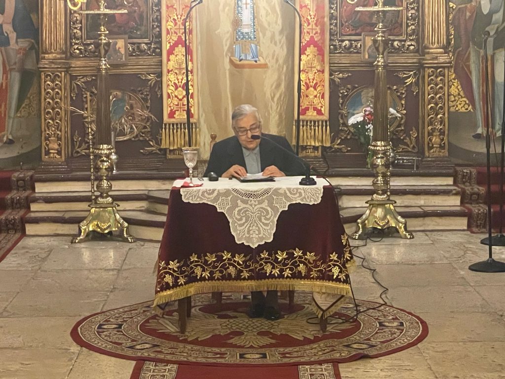 H τέταρτη φετινή Σύναξη Μελέτης Αγίας Γραφής της Ιεράς Μητροπόλεως Λευκάδος και Ιθάκης πραγματοποιήθηκε το απόγευμα της Πέμπτης 7 Δεκεμβρίου 2023 στον Ιερό Ενοριακό Ναό Αγίων Αναργύρων Λευκάδος με ομιλήτρια την εκπαιδευτικό Φωτεινή Βερυκίου, εκπαιδευτικό, και θέμα: «Βηθλεέμ ἐτοιμάζου, εὐτρεπιζέσθω ἡ φάτνη, τό Σπήλαιον δεχέσθω»: Πορεία πρός τήν Βηθλεέμ.
