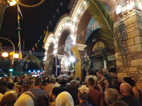 Σε μια ατμόσφαιρα ηθικής έξαρσης και με την συντριπτική πλειοψηφία του λαού του 4-ου Διαμερίσματος των Αθηνών – Κολωνός, αλλά και πλήθους άλλων Αθηναίων, που συνέρρευσαν από το κέντρο της Αθήνας και παρακείμενα Διαμερίσματα, εορτάσθηκε πανηγυρικά την Τετάρτη 14-8-19, η κοίμηση της Θεοτόκου Παναγίας. Της κεχαριτωμένης Μαρίας, που συνιστά την μητέρα του τραγικού στην ιστορία γένους των Ελλήνων και επισκοπεί με την παρουσία της στην αχανή λεωφόρο του χρόνου, την τιμαλφή πολιτισμική μήτρα του ελληνισμού. Βρέθηκε πολλές φορές ο ελληνισμός στα σταυροδρόμια της ιστορίας και στην δίνη της επιβουλής αμέτρητων εχθρών, αλλά ήταν η πάντοτε παρούσα η γλυκοματούσα Παναγιά, που σαν στοργική μητέρα άπλωνε τις προστατευτικές της φτερούγες και διέσωζε το γένος. «Εκ παντίων με κινδύνων ελευθέροσον» ! Εκεί στο τέρμα της Λένορμαν λοιπόν, στην λαμπροστόλιστη Παναγία της Κολοκυνθούς, που λαμπυρίζοντας στο γλυκύ λιόγερμα, κατηύγαζε το πνευματικό θάμπος του σταυραετού του βυζαντίου, αλλά και την ηθική μεγαλουργία της Ορθοδοξίας, με την καταιγιστική παρουσία του, ο ευσεβής λαός των Αθηνών, διατράνωσε την ακατάλυτη στο χρόνο, σχέση ελληνισμού και ορθοδοξίας. Με την διάστικτη κατάνυξή του, αλλά και την ηθική του έξαρση, για την προστάτιδα του γένους κεχαριτωμένη Μαρία. Κατασυγκινημένος και ένδακρυς για την κοίμηση της Πλατυτέρας των Ουρανών, που μεταλαμπαδεύει διαχρονικά στα πέρατα της οικουμένης, την πνευματική ταυτότητα και το ήθος των Ελλήνων. Αλλά και ο περικαλλής ναός της Κολοκυνθούς, με έκδηλη την φροντίδα και την αγάπη σε κάθε του σημείο, του ευλαβούς Αρχιμανδρίτη και Αρχιερέα του, πατρός Φιλόθεου Θεοδωρόπουλου, είχε στην κυριολεξία τα γιορτινά του και λαμποκοπούσε από ομορφιά και παστρικότητα, για να τιμήσει την κοίμηση της κορυφαίας της Ορθοδοξίας μας, παναχράντου Παναγίας. Της κεχαριτωμένης Μαρίας, που είναι ο εμπνευστής και δημιουργός της κτίσης όλης. Η «και των προ αυτής αιτία και των μετ αυτής προστάτης και των αιωνίων πρόξενος».