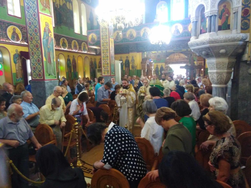 Της πανηγυρικής λειτουργίας χοροστάτησε ο ευλαβής Μητροπολίτης Νέας Φιλαδέλφειας – Νέας Χαλκηδόνας Γαβριήλ – που λαμπρύνει την ελλαδική εκκλησία με την υψηλή θεολογική του παιδεία και το πολυεδρικό φιλανθρωπικό του έργο – συνεπικουρούμενος από τους ευσεβείς ιερείς του ναού.
