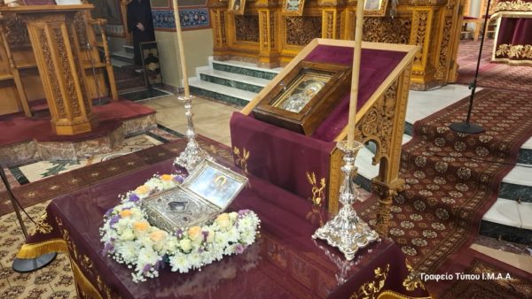 Κατά την διάρκεια της συνάξεως τέθηκε προς προσκύνηση και αγιασμό των πιστών απότμημα ιερού λειψάνου του Αγίου Ανθίμου.