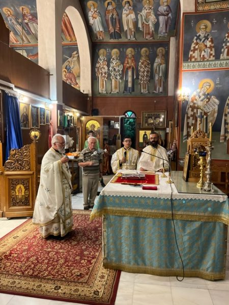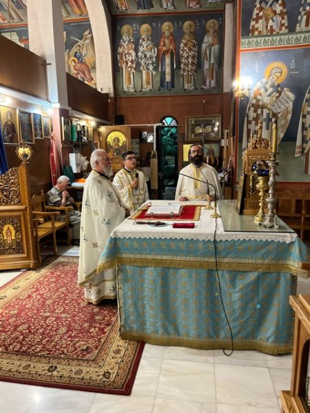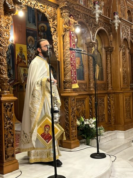 Την Ιερά Αγρυπνία τέλεσε ο Προϊστάμενος του Ι.Ν. π. Νικόλαος Αργυρίου και ο συνεφημέριός του π. Χρήστος Νγκέλας, παρουσία ευλαβών προσκυνητών.