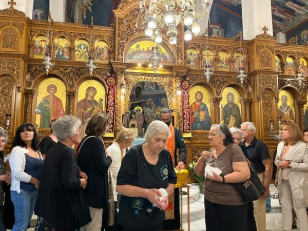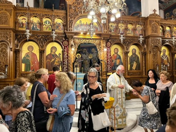 Σε κλίμα κατάνυξης τελέστηκε το βράδυ της Δευτέρας 23 Σεπτεμβρίου 2024 η Ιερά Αγρυπνία επί τη εορτή της Συνάξεως της Παναγίας της Μυρτιδιώτισσας σαράντα ημέρες μετά από την Κοίμηση και την εις ουρανούς μετάσταση της Παναγίας μας στον Ιερό Ναό Αγίου Παντελεήμονος.