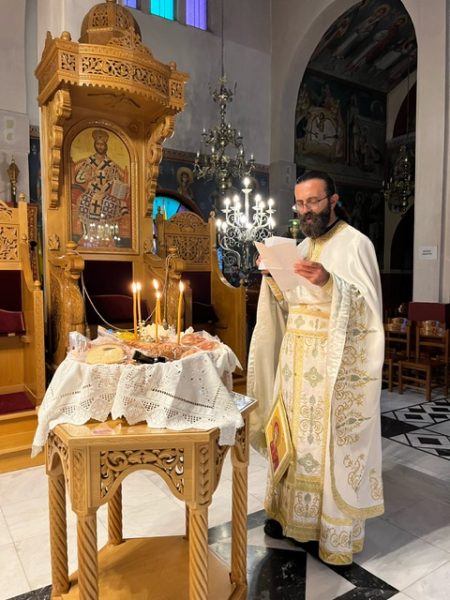 Στο τέλος της Θείας Λειτουργίας ευλογήθηκε το φαγητό και τα εδέσματα προς ευλογία των πιστών.