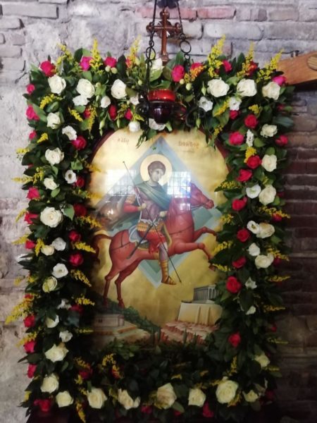 Επίσης, αναφέρθηκε στον Άγιο Δημήτριο, που έδωσε το σώμα του και το αίμα του για τον Χριστό, λέγοντας πως κι εμείς οι σημερινοί Χριστιανοί πρέπει να αγωνιζόμαστε να γίνουμε μιμητές του Αγίου.