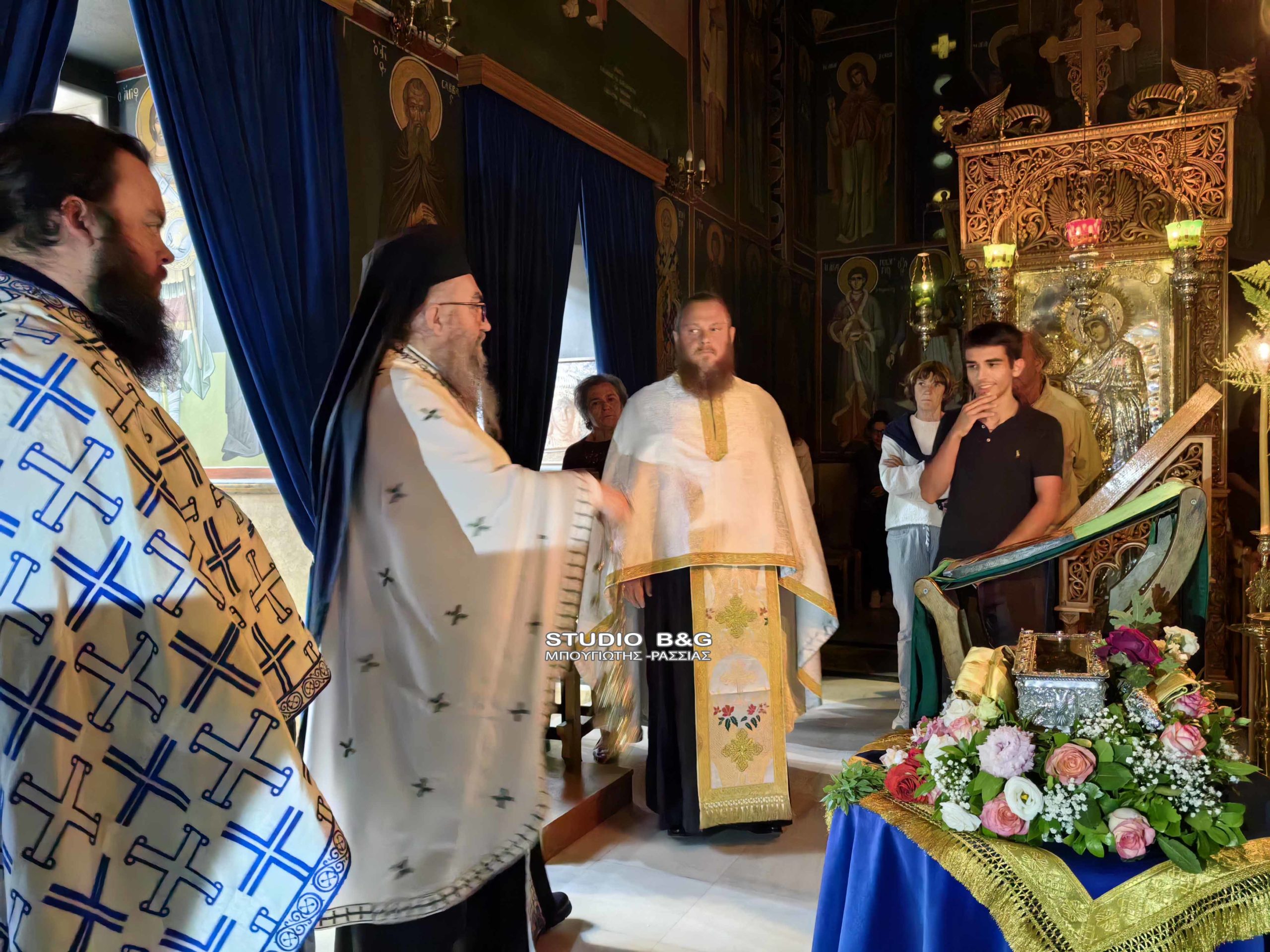 Η υποδοχή πραγματοποιήθηκε από τον Μητροπολίτη Αργολίδος κ. Νεκτάριο παρουσία κλήρου και λαού. Ακολούθησε Ιερά αγρυπνία ιερουργούντος του Ιεροκήρυκα της Μητροπόλεως Αργολίδας αρχιμανδρίτη π. Χρυσόστομο.
