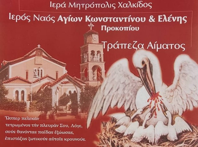 Αιμοδοσία αγάπης θα πραγματοποιηθεί στην αίθουσα του Πνευματικού κέντρου, του Ιερού Ναού Αγίου Κωνσταντίνου και Ελένη Προκοπίου Εύβοιας, το Σάββατο 22 Οκτωβρίου.