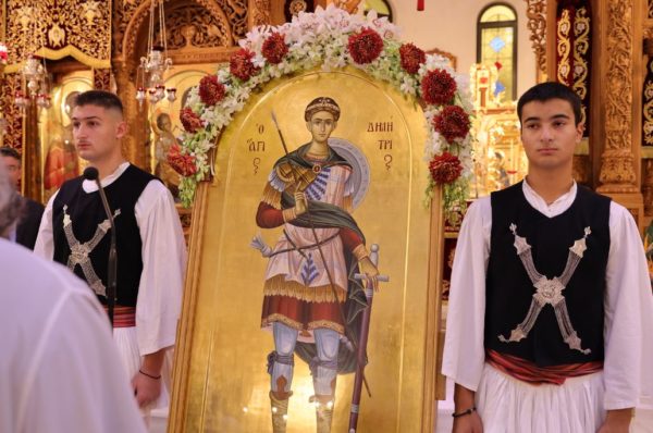 Οι λατρευτικές εκδηλώσεις της κυριώνυμης ημέρας των «ΔΗΜΗΤΡΙΩΝ» ολοκληρώθηκαν με την λιτάνευση τη ιεράς εικόνας του Μεγαλομάρτυρος Αγίου Δημητρίου του Μυροβλύτου επί στρατιωτικού οχήματος και των χαριτόβρυτων αγίων λειψάνων στους δρόμους της πόλεως με τη συμμετοχή πλήθους πιστών και την ιερά παράκληση του Μεγαλομάρτυρος Αγίου Δημητρίου η οποία εψάλη αμέσως μετά την ιερά λιτάνευση.
