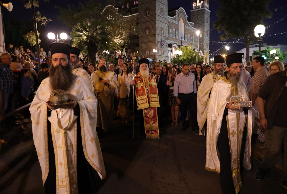 Τιμές απέδωσαν Ένοπλο Άγημα του Στρατού Ξηράς ενώ παιάνισαν οι Φιλαρμονικές του Λιμενικού Σώματος και του Δήμου. Προ της απολύσεως της ιεράς λιτανεύσεως, όλοι οι πιστοί έψαλαν το κοντάκιο “Τη Υπερμάχω”, προς τιμήν της Υπεραγίας Θεοτόκου και τον Εθνικό μας Ύμνο.
