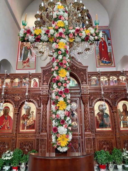 Ανθοστόλιστος και χαροποιός ήταν ο Σταυρός του Ιερού Αγίας Μαρίνας Περιστερίου επί τη εορτή της Παγκοσμίου Υψώσεως του Τιμίου Σταυρού.