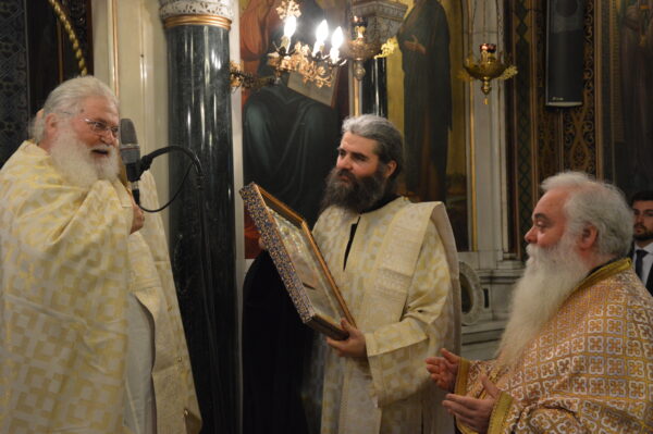 Κατά την ομιλία του ο Καθηγούμενος της ΙΜΜ Βατοπαιδίου Γέροντας Εφραίμ μίλησε για τον Γέροντα Ιωσήφ τον Ησυχαστή, ενώ αναφέρθηκε επίσης στον Γέροντα Ιωσήφ Βατοπαιδινό και τον Γέροντα Εφραίμ τον Κατουνακιώτη. Τόνισε τη δύναμη των μνημοσύνων αλλά και την ευκαιρία να βιώνουμε ως πιστοί την ουράνιο βασιλεία ήδη από αυτή τη ζωή. “Το μεγαλύτερο γεγονός σε αυτόν τον κόσμο είναι η Θεία Λειτουργία” όπως τόνισε χαρακτηριστικά και συμπλήρωσε: “Να φροντίζει κανείς για τη σωτηρία της αθανάτου ψυχής του”. Αναφέρθηκε επίσης στο παράδειγμα του Γέροντος Ιωσήφ του Βατοπαιδινού, ο οποίος ποθούσε το θάνατο. Αλλά γιατί; Διότι βίωνε ήδη από αυτήν τη ζωή την ουράνιο βασιλεία και επειγόταν για αυτήν τη συνάντηση του με το Κύριό του, όπως σημείωσε με έμφαση ο Γέροντας Εφραίμ.
