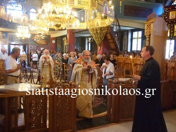 Την παραμονή, εψάλη ο μέγας πανηγυρικός εσπερινός και ανήμερα της εορτής εψάλη ο όρθρος και στη συνέχεια τελέσθηκε πανηγυρική Θεία Λειτουργία από τους Ιερείς της Ενορίας π. Βασίλειο και π. Νέστορα. Μετά το τέλος της Θείας Λειτουργίας, ο πρωτοπρεσβύτερος π. Βασίλειος ομίλησε και αναφέρθηκε στην ανανέωση της πληρότητας του εαυτού μας με το Άγιο Πνεύμα, την αύξηση στην πνευματική ζωή. Είπε: «Είναι μεγάλο το κέρδος να έχω το Άγιο Πνεύμα. Αν το έχω, έχω τα πάντα. Αν το στερηθώ, στερούμαι τα πάντα». Και κατέληξε: «Αγαπητοί μου, η αλήθεια είναι μία, έχουμε ανάγκη από το Άγιο Πνεύμα. Το πώς θα μας δει ο κόσμος, αυτό να μη μας ενδιαφέρει. Εκείνο που πρέπει να μας ενδιαφέρει είναι να γεμίσουμε με το Άγιο Πνεύμα. Και αυτή τη στιγμή, ο κόσμος όλος έχει ανάγκη από το Πνεύμα του Θεού, που φέρνει την ειρήνη, την αγάπη, τη χαρά. Και οι πιστοί όταν το κατανοήσουν, τότε δεν θα ζητούν τίποτ’ άλλο, παρά μαζί με τον ψαλμωδό θα λένε: «Κύριε, τό Πνεῦμα σου τό Ἅγιον μή ἀντανέλης ἀπ’ ἐμοῦ». Μη μου το αφαιρείς, Κύριε, το Πνεύμα σου. Αυτό είναι το Α και το Ω της μακαριότητάς μου».