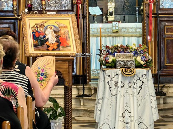 Ο Ιερός Ναός Αγίας Τριάδος στην Πρόνοια Ναυπλίου υποδέχθηκε τα Ιερά Λείψανα των Αγίων Ραφαήλ, Νικολάου και Ειρήνης από τη Μυτιλήνη την Τετάρτη 5 Ιουνίου 2024.