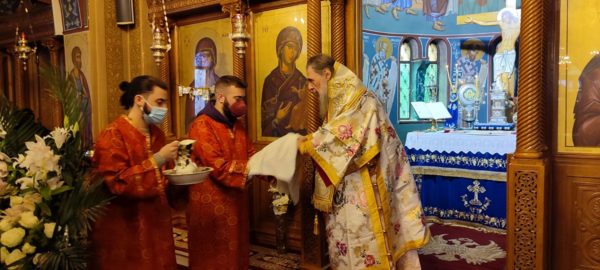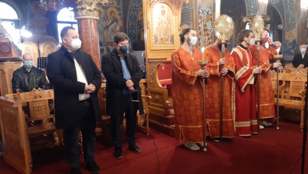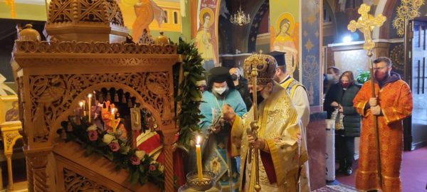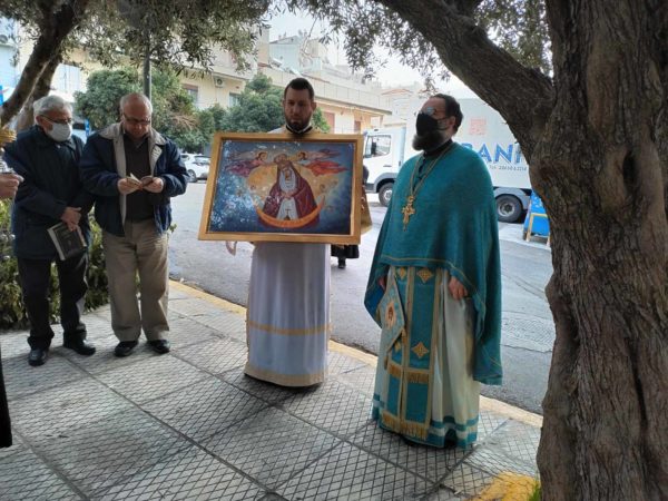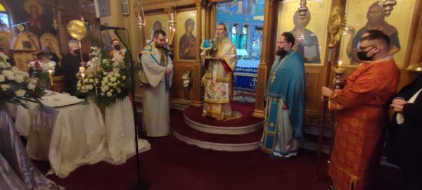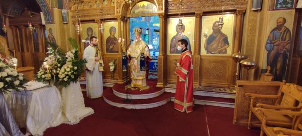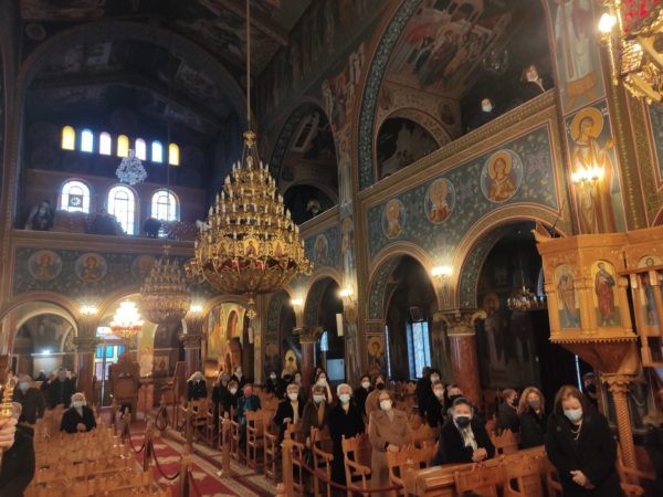 Την προεόρτια Κυριακή 13 Φεβρουαρίου, τέλεσε την Α΄ Θεία Λειτουργία ο μητροπολίτης Θαυμακού Ιάκωβος, ο οποίος προεξήρχε λιτανείας εντός του ναού και δεήσεως κατά του κορωναϊού. Μαζί του συλλειτούργησαν οι εκ των κληρικών του ναού, αρχιμανδρίτης Σεραφείμ Δημητρίου και διάκονος Γεώργιος Βάρσος. Ο μητροπολίτης στην ομιλία του, αμέσως μετά την ανάγνωση του ιερού Ευαγγελίου, είπε μεταξύ άλλων, “η Ευαγγελική περικοπή που διαβάζεται τρεις εβδομάδες πριν αρχίσει η μεγάλη και αγία τεσσαρακοστή και επειδή αρχίζει η έντονη λατρευτική δραστηριότητα και η έντονη θα λέγαμε περισυλλογή και προσοχή των πιστών για να ετοιμαστούμε για τη μεγάλη εορτή του Πάσχα, είναι δικαιολογημένο να έρχεται στο νου μας ότι, εφόσον εκκλησιαζόμαστε τακτικά, εφόσον κάνουμε ελεημοσύνη, εφόσον κάνουμε τις προσευχές μας και τις νηστείες μας και όλα τα θρησκευτικά μας καθήκοντα, έχουμε θα έλεγα πρόσωπο απέναντι στον Θεό. Αυτό είναι μια λανθασμένη εκτίμηση όλων των θρησκευτικών δυνατοτήτων που προσφέρει η Εκκλησία όπως είναι τα μέτρα τις προσευχές, της νηστείας, της ελεημοσυνης. Θα πρέπει ο πιστός να ξέρει ότι Εκείνος ο οποίος μας δίνει το έλεος, Εκείνος ο οποίος μας δίνει την ευλογία για να καρποφορήσει οποιαδήποτε προσπάθεια μας, είναι ο ίδιος ο Θεός. Θα πρέπει να γνωρίζουμε ότι καμία ενέργεια και καμιά πράξις και όλη μας την περιουσία να δώσουμε στους φτωχούς και όλο το εικοσιτετράωρο να προσευχόμαστε και οτιδήποτε καλό κάνουμε μέσα στη ζωή μας, είναι ένα θετικότατο στοιχείο για να μπορέσει να καλλιεργηθεί η ψυχή μας, αλλά όμως εκείνο το οποίο θα αξιοποιήσει όλες αυτές τις πράξεις μας είναι αν πάντοτε αναφερόμεθα εις τον Σταυρό του Κυρίου. Εάν πάντοτε μέσα εις την πνευματικήν μας πορεία είναι και κυριαρχεί ο Σταυρός του Κυρίου και τα απλωμένα χέρια του επί του Σταυρού καρφωμένα. Το αίμα του Κυρίου είναι εκείνο το οποίο φέρνει την λύτρωση εις τον άνθρωπον και το ανθρώπινο γένος διότι εκεί πλέον σταυρώθηκε ολόκληρη η αμαρτία του κόσμου και αυτός ο αναμάρτητος προσεφέρθηκε ως αμνός άμωμος για να μας δώσει την συγχώρεση και να μας δώσει την δυνατότητα να γίνουμε πάλι παιδιά του Θεού”.