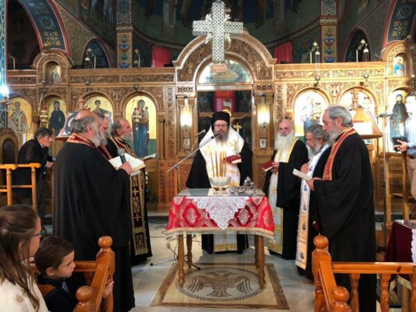 Ο εφημέριος του ναού, π. Απόστολος Ρήγας και όλοι οι πιστοί υποδέχθηκαν τον σεπτό Ποιμενάρχη στην όμορφη κωμόπολη τους και του ευχήθηκαν να έχει μία καρποφόρα ποιμαντορία.