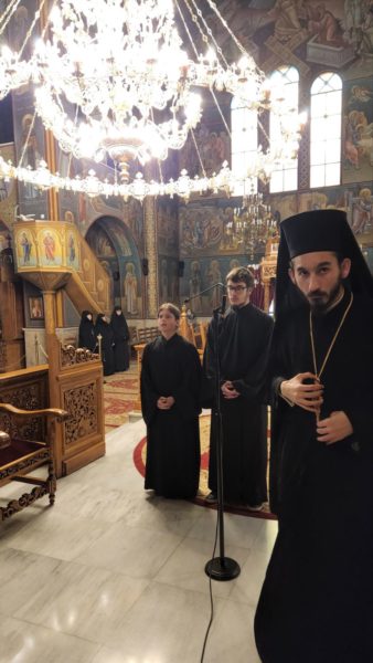Συμπροσευχήθηκαν πατέρες της Μονής, στην οποία ο εορτάζων κοινολόγησε ότι βρίσκει αποκούμπι, αλλά και η ηγουμένη της εκεί γυναικείας μονής αγίων Νεκταρίου και Φανουρίου, μητέρα Μόνικα με δυο αδελφές.