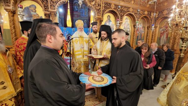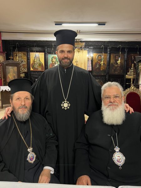 Μαζί ο συμφοιτητής του, ιεραπόστολος από άμβωνος και τηλεοράσεως Επίσκοπος Κερνίτσης Χρύσανθος, βοηθός του Σεβασμιωτάτου Μητροπολίτου Πατρών, συνοδευόμενος και από τον εκείθεν διάκονο Αιμιλιανό.