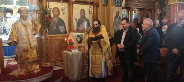 Αρχιερείς συλλειτουργοί, ως ο Σεβασμιώτατος Μητροπολίτης Καρπενησίου κ. Γεώργιος, ο οποίος έλαβε λόγον παραμυθητικό στην δοχή και δέχθηκε τις ευχαριστίες του εορτάζοντος και για το εκ βαθέους όρθρου εξ Ευρυτανίας ταξείδιον, ένδειξη ανιδιοτελούς αγάπης.