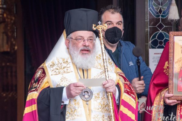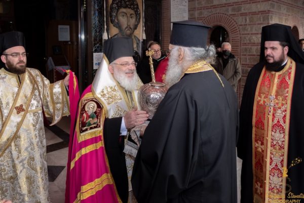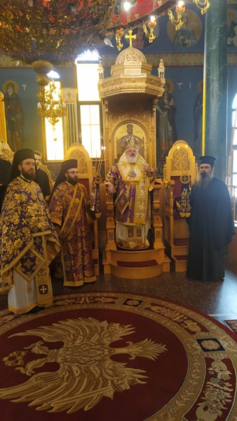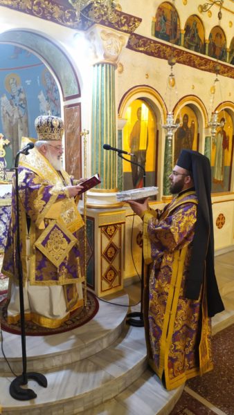 Με την ευκαιρία συνεχάρη τον άγοντα τα ονομαστήριά του Αρχιμ. Θεόφιλο Βασιλάκο, προϊστάμενο του Ναού και Ηγούμενο της Ιεράς Μονής Δαδιάς και ευχήθηκε σε αυτόν τα δέοντα.