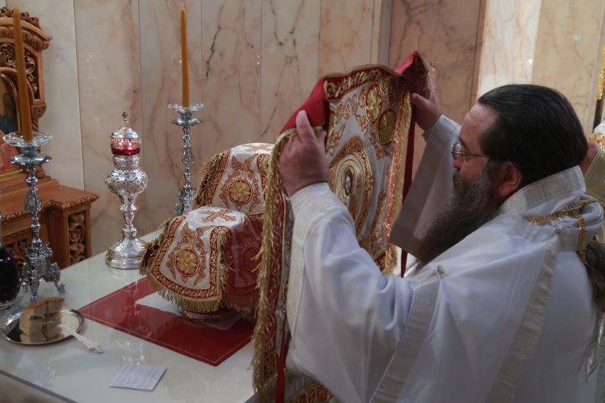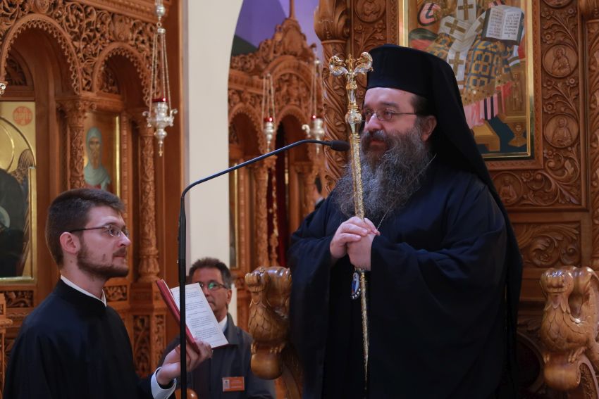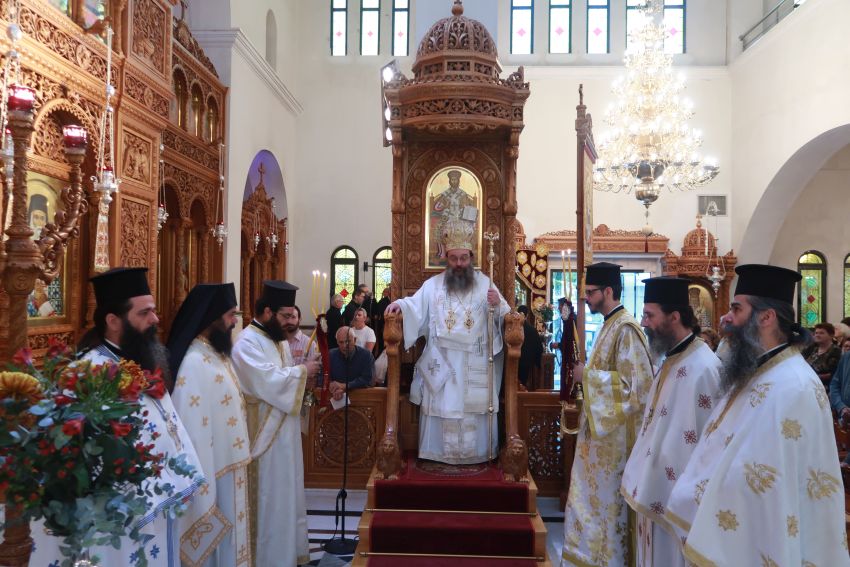 Στο θείο κήρυγμα ο Σεβασμιώτατος μεταξύ των άλλων είπε: “Ήρθαμε σήμερα εδώ καταρχάς για να τελέσουμε τη Θεία Ευχαριστία και λέω καταρχάς γιατί το μυστήριο της Θείας Λειτουργίας, αυτό και μόνο υπερέχει των πάντων. Αν τελέσουμε αυτό, έχουμε τελέσει τα πάντα! Ενθυμούμαι στις πολλές αναγνώσεις του ημερολογίου μια αγία μορφή της Εκκλησίας μας των εσχάτων χρόνων του μακαριστού Μητροπολίτου Χαλκίδος, όντως Αγίου, Νικολάου Σελέντη όταν τον καλούσαν να κηρύξει, η απάντηση του ήταν: “Εγώ ξέρω μόνο να κλαίω και να προσεύχομαι” και μέσα στο κλαίω έκρυβε την μετάνοια της ψυχής του ανθρώπου και την ταπεινοφροσύνη του ανθρώπου και μέσα στο προσεύχομαι έκρυβε κατεξοχήν τη Θεία Λειτουργία, γιατί η Θεία λειτουργία είναι ο Θεός όντως, τόπος και τρόπος και χρόνος της προσευχής του καθενός από εμάς”.