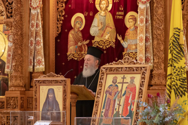 Ο Σεβασμιώτατος με έναν υπέροχο κατηχητικό λόγο ανέλυσε με άλλα λόγια το σωτήριο έργο του Χριστού, που βιώνουμε μέσα στην Εκκλησία. “Ο πιστός, ως συνειδητό μέλος του Σώματος του Χριστού, που είναι η Εκκλησία, ζει τη ζωή του Χριστού μυστηριακά, λειτουργικά, μετέχοντας στη Θεία δόξα δια της συμμετοχής του στο Ποτήριο της Ζωής, την Θεία Ευχαριστία. Η αγάπη του Τριαδικού Θεού, φανερώνεται στο γεγονός ότι ο άνθρωπος καθίσταται διά του εκκλησιαστικού τρόπου ζωής, κατοικητήριο του Θεού. Προετοιμάζεται ο άνθρωπος, ο βαπτισμένος στο όνομα του Τριαδικού Θεού, με την μετάνοια, την εξομολόγηση, την εφαρμογή των θείων εντολών, τη συγχώρηση, και την ανιδιοτελή αγάπη, να καθαρίσει την ψυχή και με την εγκράτεια και την πνευματική άσκηση το σώμα του, ώστε να γίνει αληθινά Χριστοφόρος. Αυτό φαίνεται και αποδεικνύεται στα πρόσωπα των Αγίων. Εορτάζουμε σήμερα την Αγία Ταϊσία, που ήταν πρώην πόρνη, αλλά δια της μετανοίας και την εν γένει ευαγγελικής ζωής, έγινε αυθεντικός άνθρωπος, δηλαδή Αγία”.