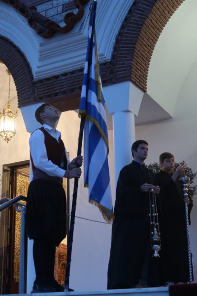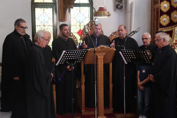 Έψαλαν πολυμελείς Βυζαντινοί χοροί υπό τη διεύθυνση των Ιεροψαλτών του Ιερού Ναού κ. κ. Γεώργιου Καμαριάρη και Ιωάννη Βαζούρα.
