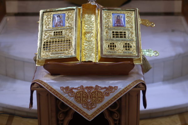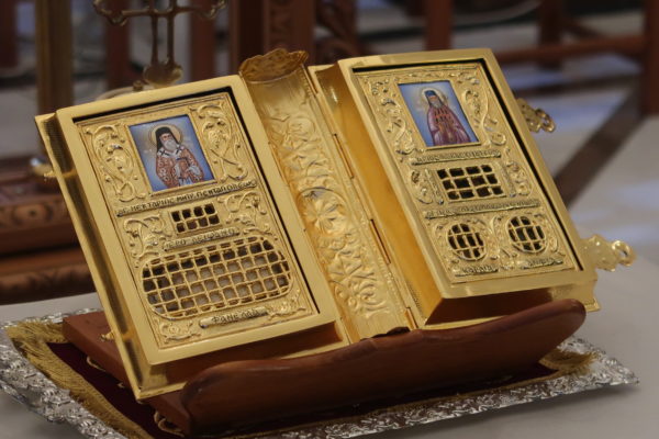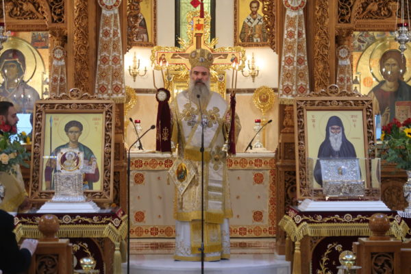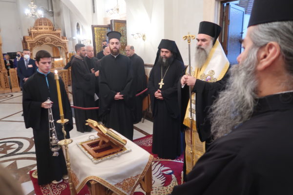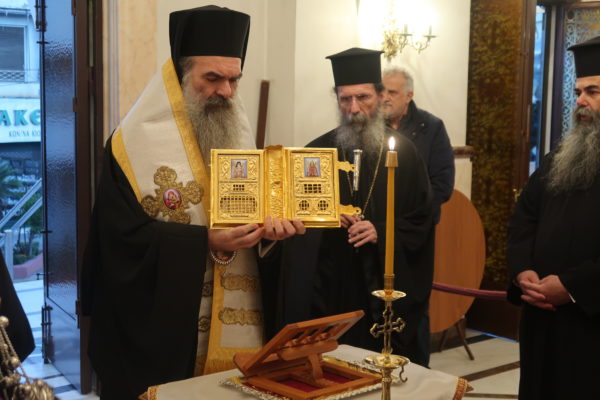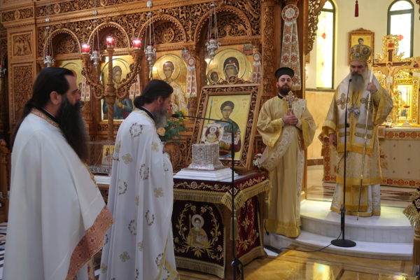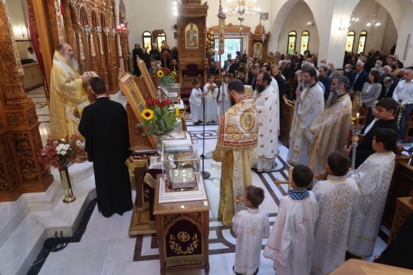 Ο Σεβασμιώτατος και οι Ιερείς στις 7.30 το πρωί υποδέχτηκαν τα ευωδιάζοντα και χαριτόβρυτα Ιερά Λείψανα των Αγίων Λουκά Αρχιεπισκόπου Συμφερουπόλεως Κριμαίας του Ιατρού και Νεκταρίου Πενταπόλεως του θαυματουγού, προερχόμενα από την Ιερά Μητρόπολη Αργολίδος, τα οποία και εισόδευσαν εντός του Ιερού Ναού σε ειδικό προσκυνητάρι και θα παραμείνουν στον Ιερό Ναό καθ’όλη τη διάρκεια της ημέρας μέχρι το πέρας της αγρυπνίας.