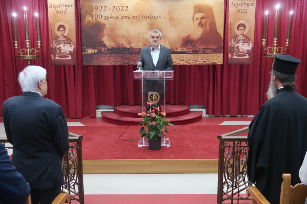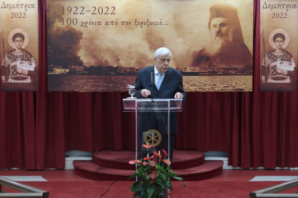 Την Κυριακή 16 Οκτωβρίου,15η ημέρα των εορταστικών εκδηλώσεων “ΔΗΜΗΤΡΙΑ 2022” του Ιερού Ναού Αγίου Δημητρίου Δήμου Αγίου Δημητρίου στις 7.00 το απόγευμα, αμέσως μετά την τέλεση του ιερού Μυστηρίου του Ευχελαίου, πραγματοποιήθηκε η επετειακή εκδήλωση για τα 100 χρόνια από Μικρασιατική καταστροφήκαι τον βίαιο ξεριζωμό του Ελληνισμού. Ομιλητής στην εκδήλωση ήταν ο τέως Πρόεδρος της Δημοκρατίας και Επίτιμος Καθηγητής Νομικής Σχολής του Εθνικού Καποδιστριακού Πανεπιστημίου Αθηνών κ. Προκόπης Παυλόπουλος με θέμα: “Η Μικρασιατική καταστροφή και το ζήτημα των μειονοτήτων σύμφωνα με τη συνθήκη της Λωζάνης”και επισήμανε, μεταξύ άλλων, τα εξής: